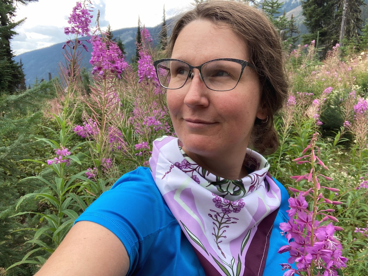Bandanas feature Abby's artwork in perfect geometric designs, capturing mountain flora and fauna!
