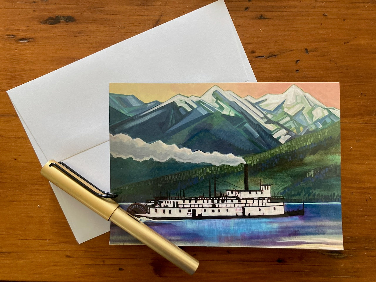 A beautiful 5x7 greeting card featuring Abby's artwork on the front and a description of the painting on the back. Blank inside. Includes envelope and comes in a compostable clear sleeve.
