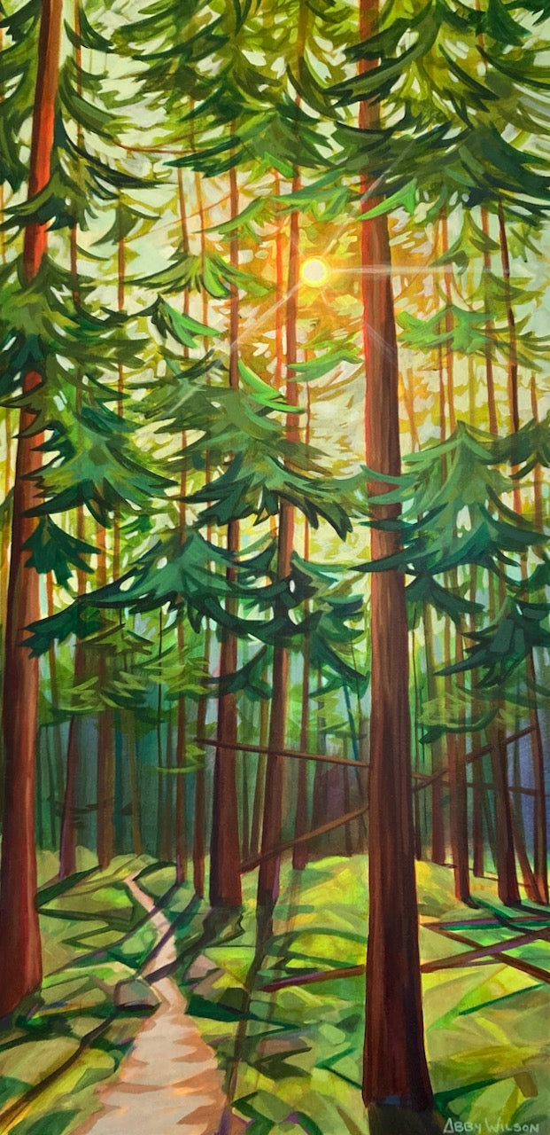 This gorgeous forest scene captures the sun filtering through the canopy to fill the world with light. Inspired by the old growth cedars on the Kimbol Lake Trail near Nakusp, this painting will fill your space with natural beauty and wonder!