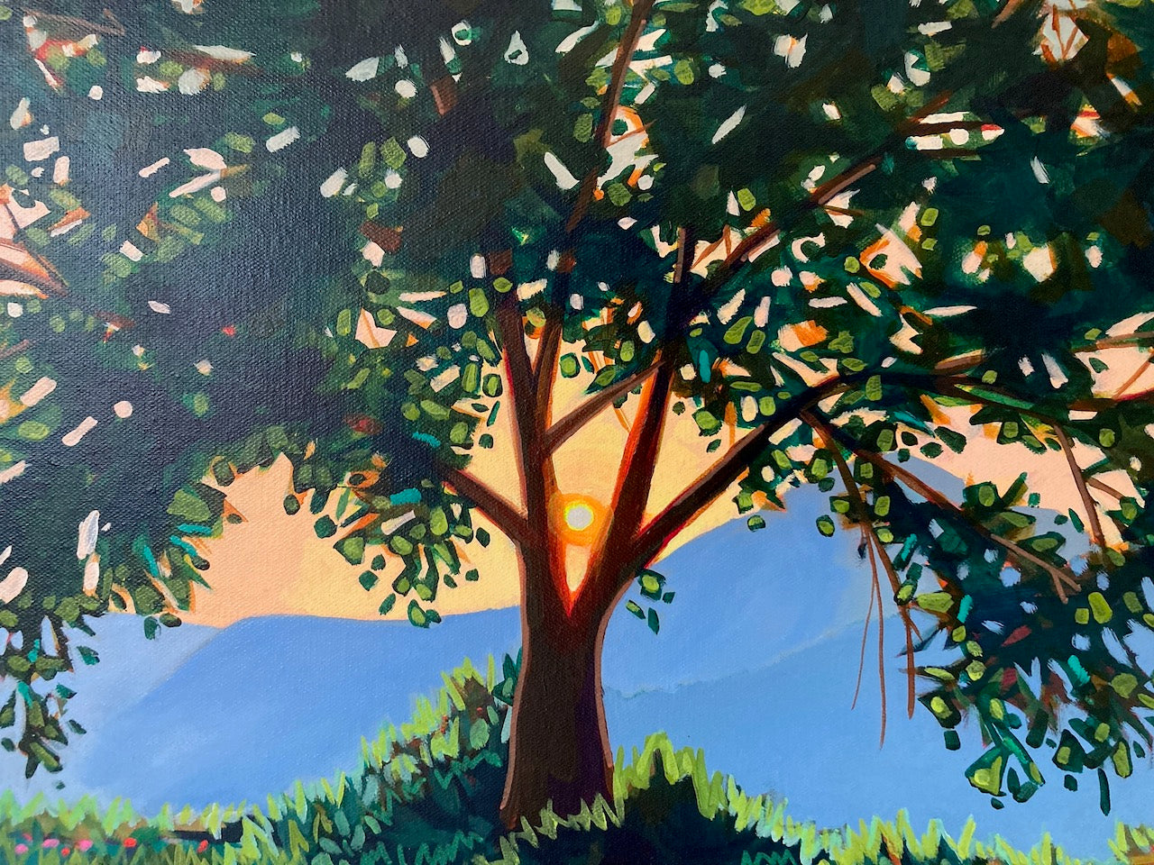We have this beautiful tree across the street and every year at midsummer the sun sets near the centre of the trunk, filling the canopy with light and colour. It's hard to believe the abundance of light and warmth in summer, compared to our long Canadian winters and I try to make the most of the season!